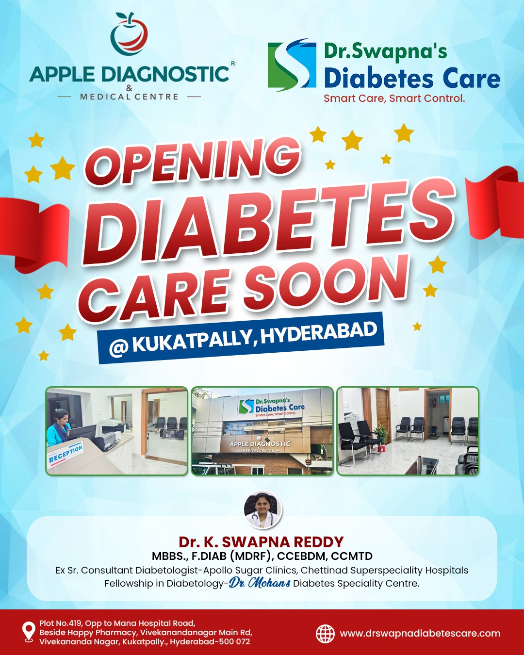 Dr. Swapna's Diabetes Care is caring endeavor founded by Dr. Swapna reddy in the year 2015 based out of Chennai which is known for its affordable and high quality diabetes solutions. We believe that diabetes is a hasslesome disease, So, we do not want the added hassle of waiting for a doctor, going to diagnostic center, finding products in another place etc. At Dr. Swapna Diabetes Care, we take the stress out of diabetes.